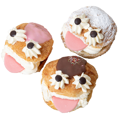 | Navn á slag | V/ FLORSUKUR KREM OG RÓMA, V/ BRÚNUM GLASURI KREM OG RÓMA, V/ LJÓSAREYÐUM GLASURI SÚLTUTOY KREM OG RÓMA |